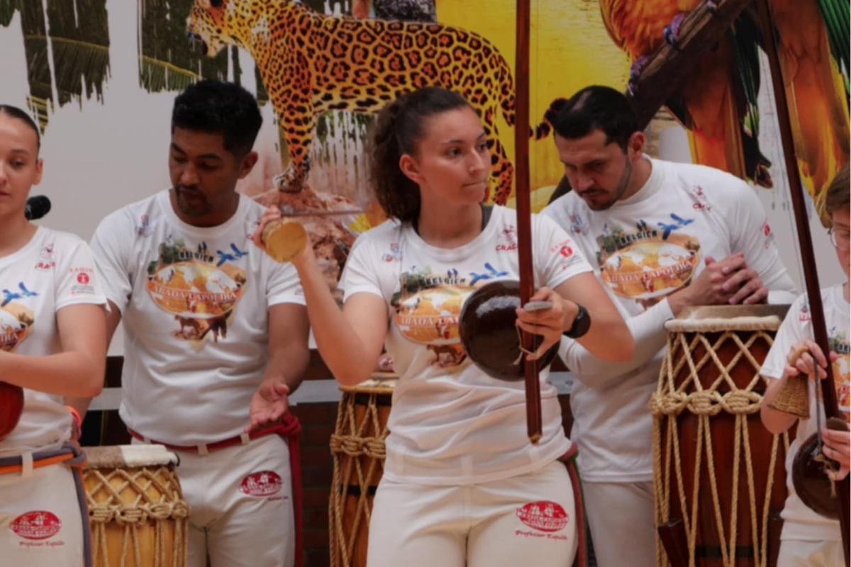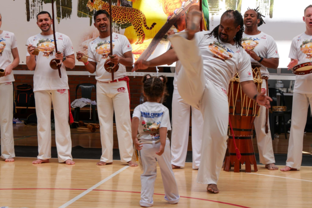 FR : La capoeira fait partie du patrimoine culturel brésilien. Dans cet événement, elle dialogue avec le folklore pour transmettre aux enfants et aux familles l’histoire, le mouvement, la musicalité, le respect et la joie de la culture brésilienne.