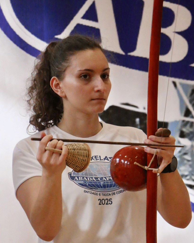 FR : Elena Piazza, connue comme Elétrica dans la capoeira, est une capoeiriste belge, instructrice certifiée et compétitrice de haut niveau à l’ABADÁ-Capoeira. Avec plus de vingt ans de pratique, elle joue aujourd’hui un rôle important dans l’enseignement et l’organisation de l’événement aux côtés de Mestrando Esquilão.